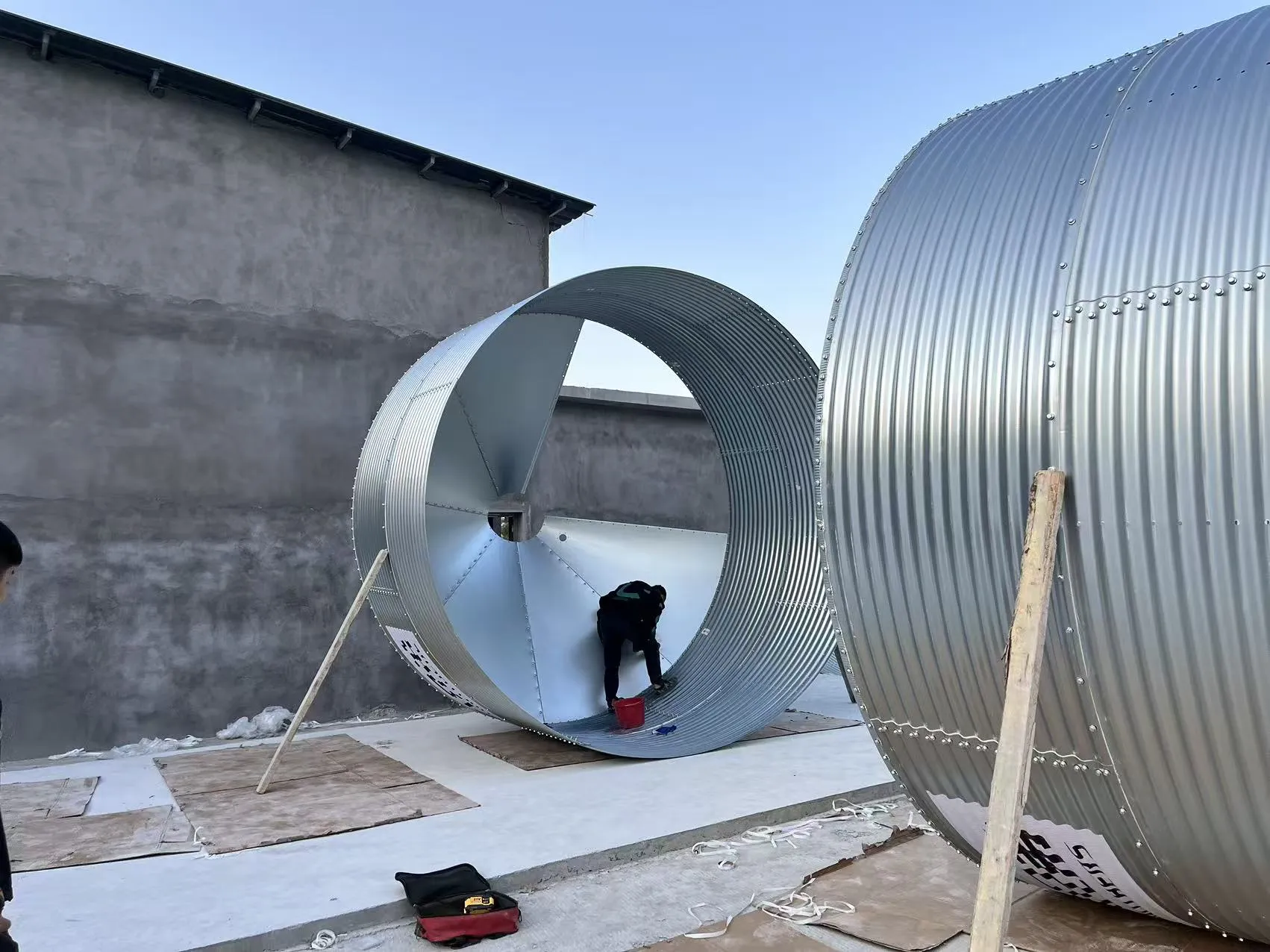 Doba výstavby sa predpokladá na tri mesiace. V súčasnosti robotníci inštalujú kŕmne silá a dorábajú maštale a výstavba je v plnom prúde.