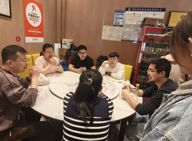 Po krátkom oddychu na pravé poludnie sme sa o 12:30 presunuli na hotel a odštartovali zaujímavú Guandanskú súťaž. Ako projekt budovania tímu, ktorý všetci milujú, Guandan nielen testuje osobné logické myslenie, ale venuje väčšiu pozornosť aj tichej spolupráci medzi partnermi – „Dobrá karta momentálne nesúťaží a tiché porozumenie partnera je dôležitejšie ako osobné hrdinstvo“, čo je presne význam budovania tímu v Guandane.